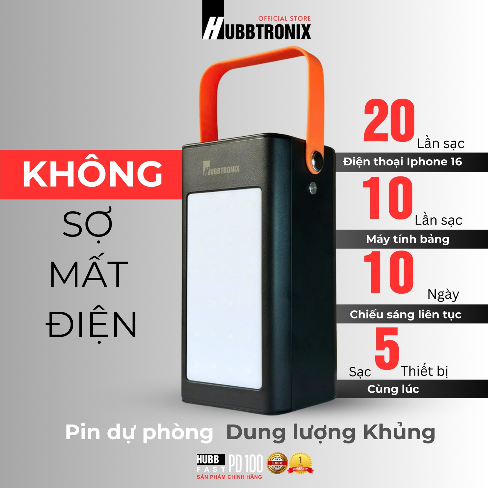 - HubbFast-PD100 (100,000mAh): Đây là lựa chọn tuyệt vời cho những người thường xuyên di chuyển, đi du lịch dài ngày hoặc sử dụng nhiều thiết bị cùng lúc. Dung lượng lớn này có thể sạc điện thoại thông minh từ 15-20 lần hoặc máy tính bảng nhiều lần trước khi hết pin.