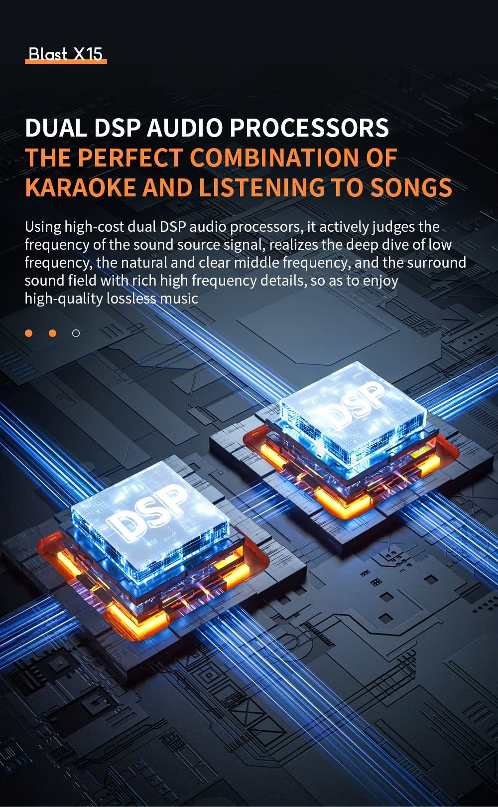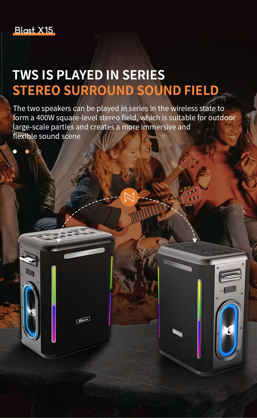 • Kết nối TWS 2 loa + Âm thanh 3D + DSP