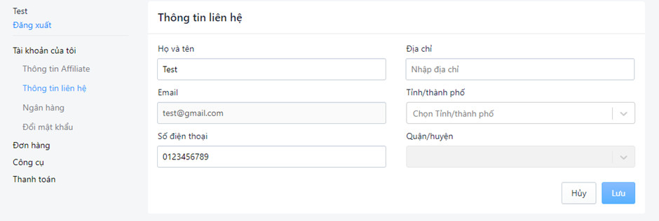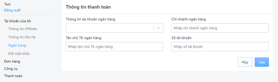 B4. Điền đẩy đủ thông tin liên hệ và Thông tin tài khoản ngân hàng: