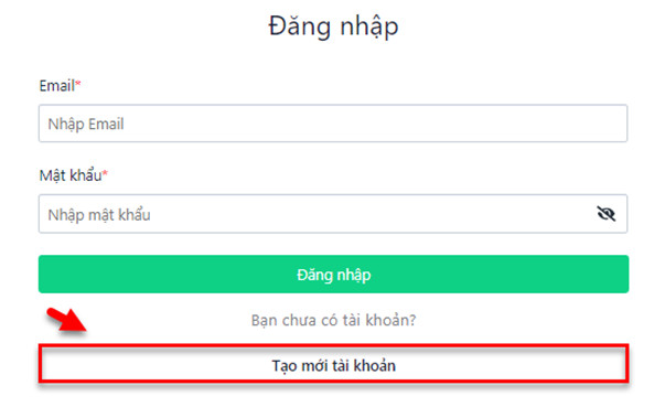 Truy cập vào link đăng ký và click chọn Tạo mới tài khoản.