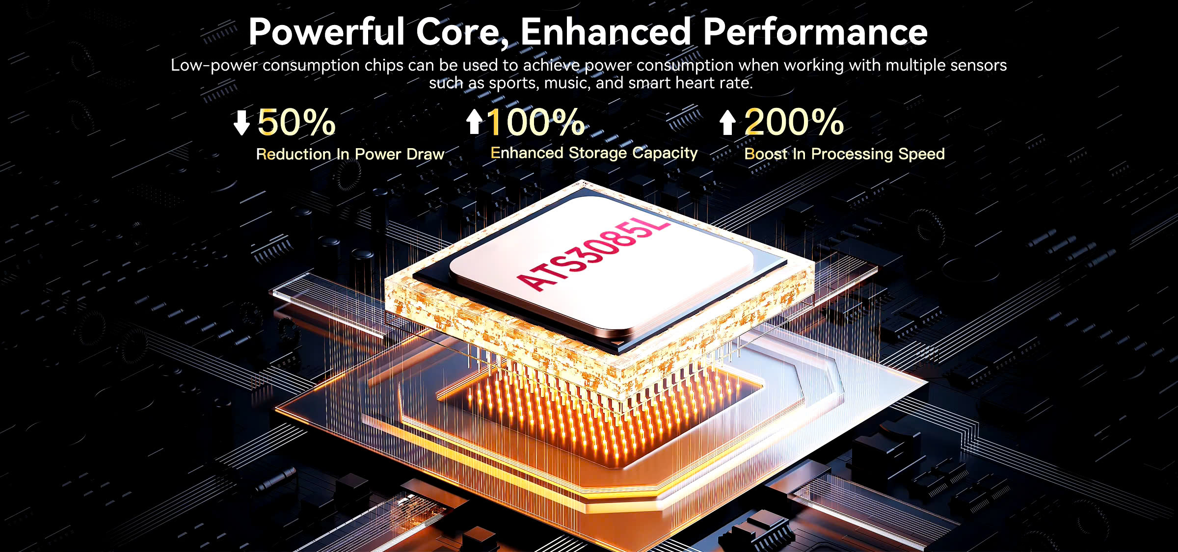 - Cảm biến: Cảm biến nhịp tim Vc30f, gia tốc kế Stk8321, la bàn và cảm biến độ cao.