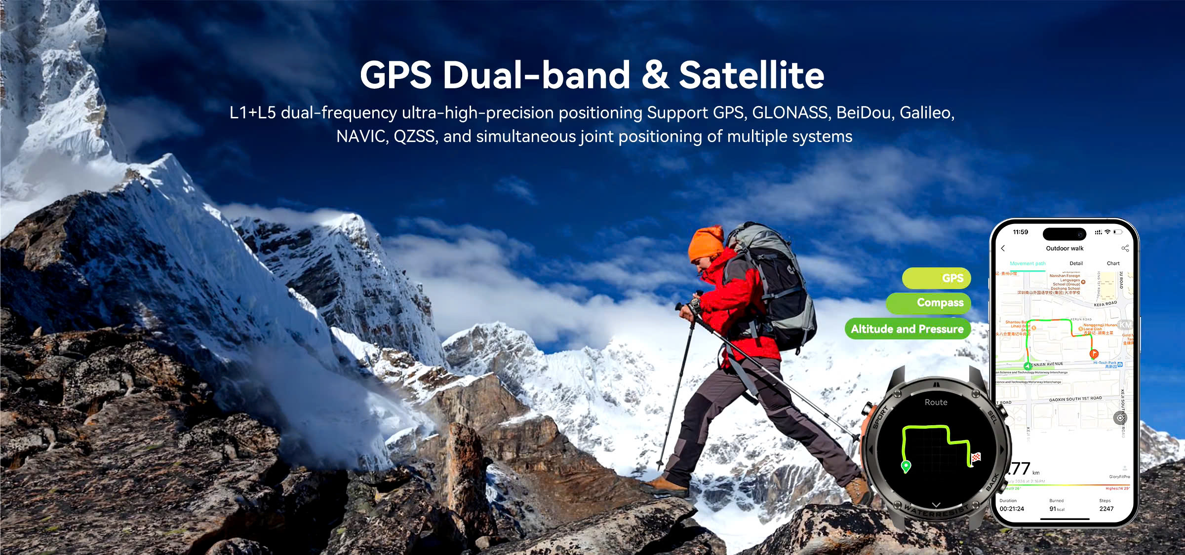 - GPS với tần số kép L1 + L5: Định vị chính xác cao, hỗ trợ các hệ thống GPS, GLONASS, BDS, Galileo, navic và QZSS, giúp bạn dễ dàng định hướng khi tham gia các hoạt động ngoài trời.