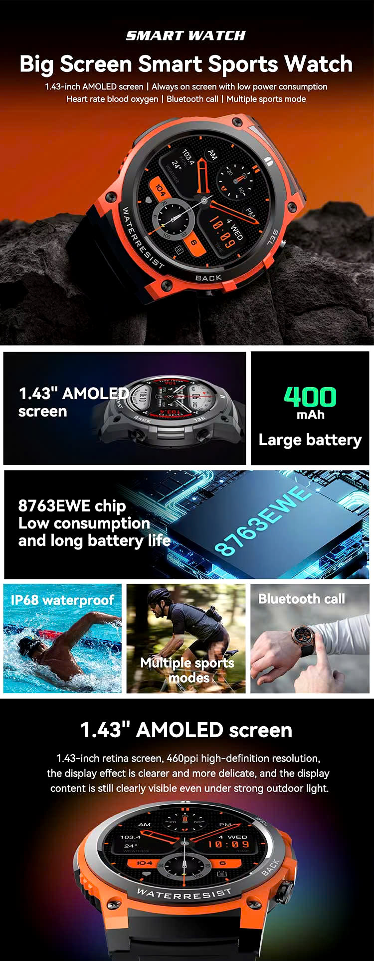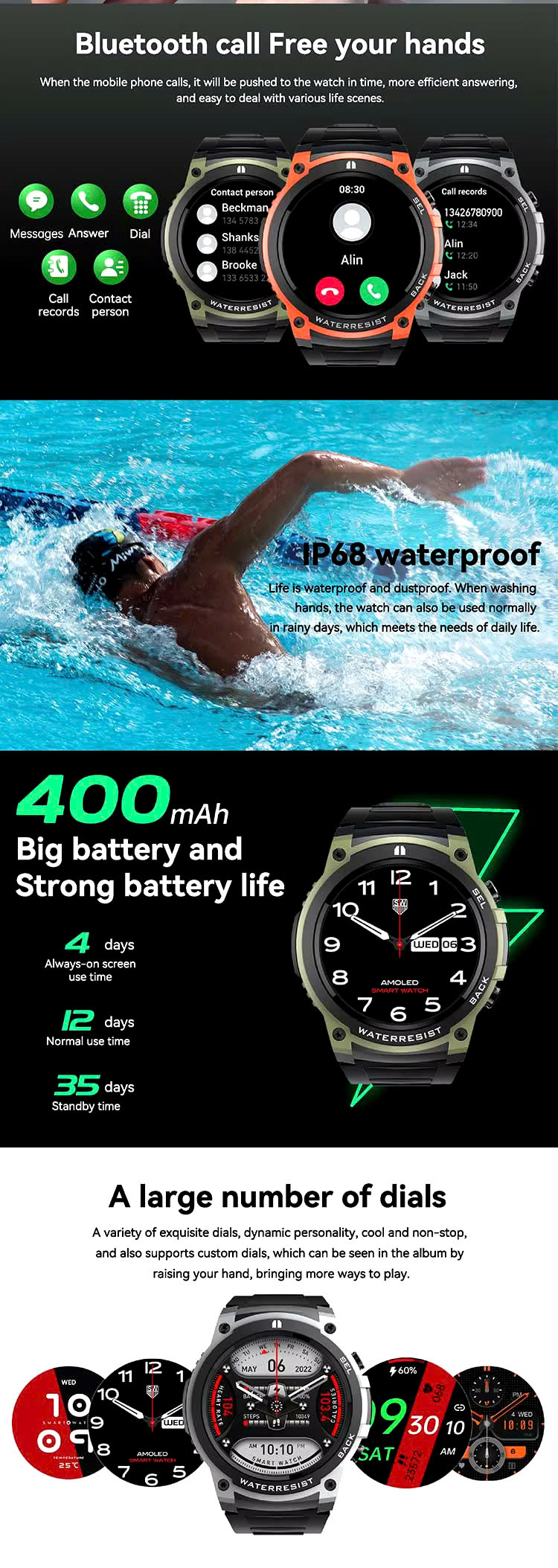 - Đàm thoại Bluetooth ngay trên đồng hồ.