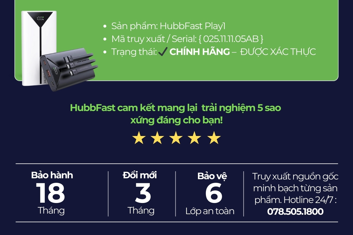 HubbFast PLAY1 – Thông Tin Chính Hãng & Xác Thực Sản Phẩm | Hubbtronix Thứ Hai, 10/11/2025 HUBBTRONIX/CYBORIS Chia sẻ bài viết: Viết bình luận của bạn Gửi bình luận Danh mục tin tức Trang chủ Giới thiệu Sản phẩm Thiết bị âm thanh Smartwatch Sạc dự phòng HubbFast Phụ kiện Thông Minh BẢO HÀNH Kích hoạt bảo hành trực tuyến Chính sách bảo hành Địa chỉ Trung tâm bảo hành tại 64 Tỉnh Thành HDSD HDSD Loa Bluetooth HDSD Tai nghe Bluetooth HDSD SmartWatch HDSD phụ kiện khác HubbFast Sản phẩm HubbFast Tin tức HubbFast Thông tin và Xác thực Tin tức Pin Sạc HubbFast Tin tức Cyboris Tin tức Công nghệ Khuyến mãi HOT Tin tức nổi bật VÌ SAO NÊN CHỌN CYBORIS RAINBOW X13 CHO MỌI CUỘC VUI? 🌈🎶 So Sánh Loa CYBORIS X12 và Harman Kardon GoPlay3: Lựa Chọn Hoàn Hảo Cho Trải Nghiệm Âm Nhạc Quy định của các hãng hàng không Việt Nam về pin dự phòng Hướng Dẫn Lựa Chọn Thiết Bị Flycam: Kinh Nghiệm Cho Người Mới Bắt Đầu Trang Bị Không Thể Thiếu Cho Người Chơi Flycam Tin liên quan HubbFast ECO21 – Thông Tin Chính Hãng & Xác Thực Sản Phẩm | Hubbtronix Chủ Nhật, 21/12/2025 HUBBTRONIX/CYBORIS PD100MAX – Thông Tin Chính Hãng & Xác Thực Sản Phẩm | Hubbtronix Chủ Nhật, 21/12/2025 HUBBTRONIX/CYBORIS PD60 – Thông Tin Chính Hãng & Xác Thực Sản Phẩm | Hubbtronix Thứ Sáu, 21/11/2025 HUBBTRONIX/CYBORIS