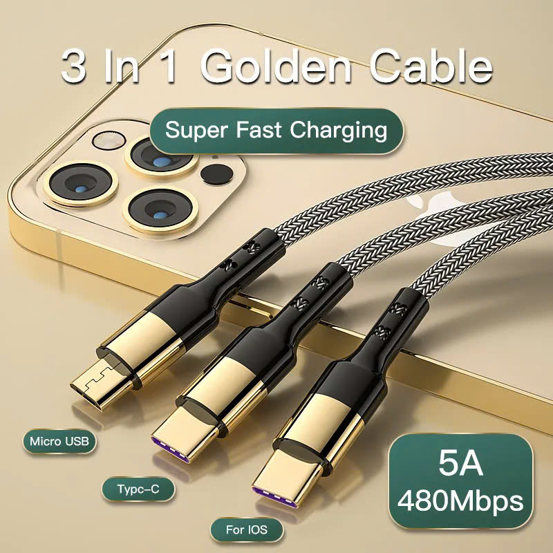 ✔ Tích hợp 3 đầu sạc: Lightning (iPhone), Micro USB (thiết bị cũ), USB-C (Android, iPad, laptop).