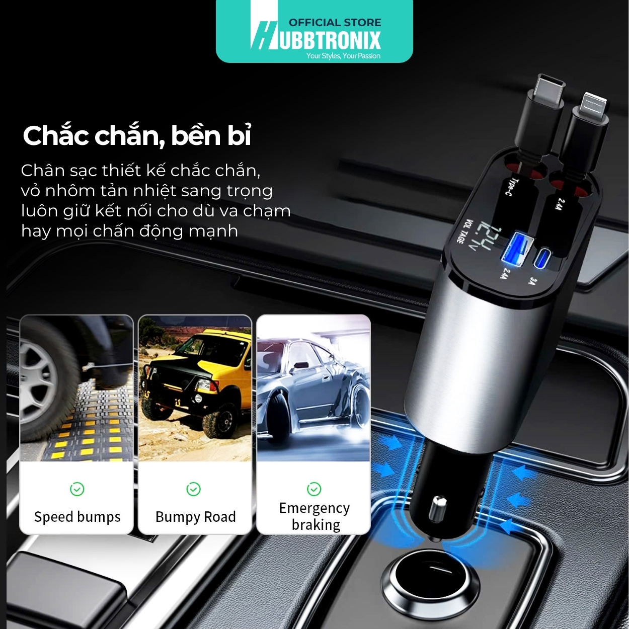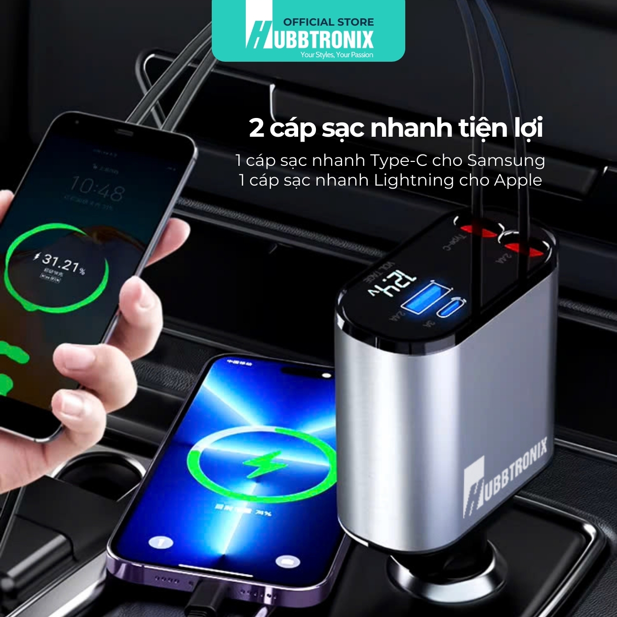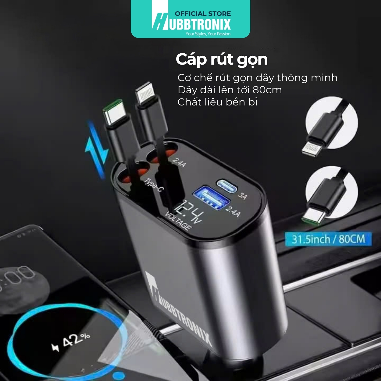 Tẩu sạc HubbSmart-TS03 từ HubbTronix mang đến công nghệ sạc nhanh tiên tiến với khả năng sạc đa thiết bị cùng lúc. Với thiết kế dây rút thông minh, sản phẩm dễ dàng lưu trữ và tiết kiệm không gian. Đây là giải pháp lý tưởng cho những ai cần sạc thiết bị di động, máy tính bảng, và thậm chí cả laptop ngay trên xe hơi!