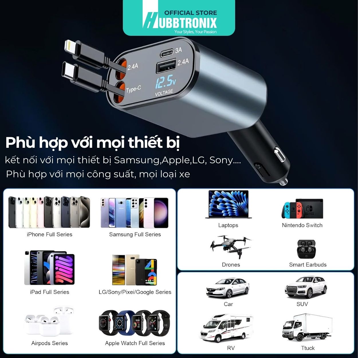 - Tương thích rộng rãi: Phù hợp với mọi loại xe hơi và thiết bị điện tử phổ biến hiện nay.