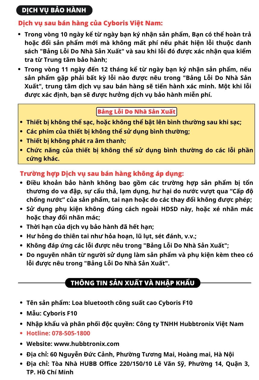 Hướng dẫn sử dụng Loa Bluetooth Cyboris F10