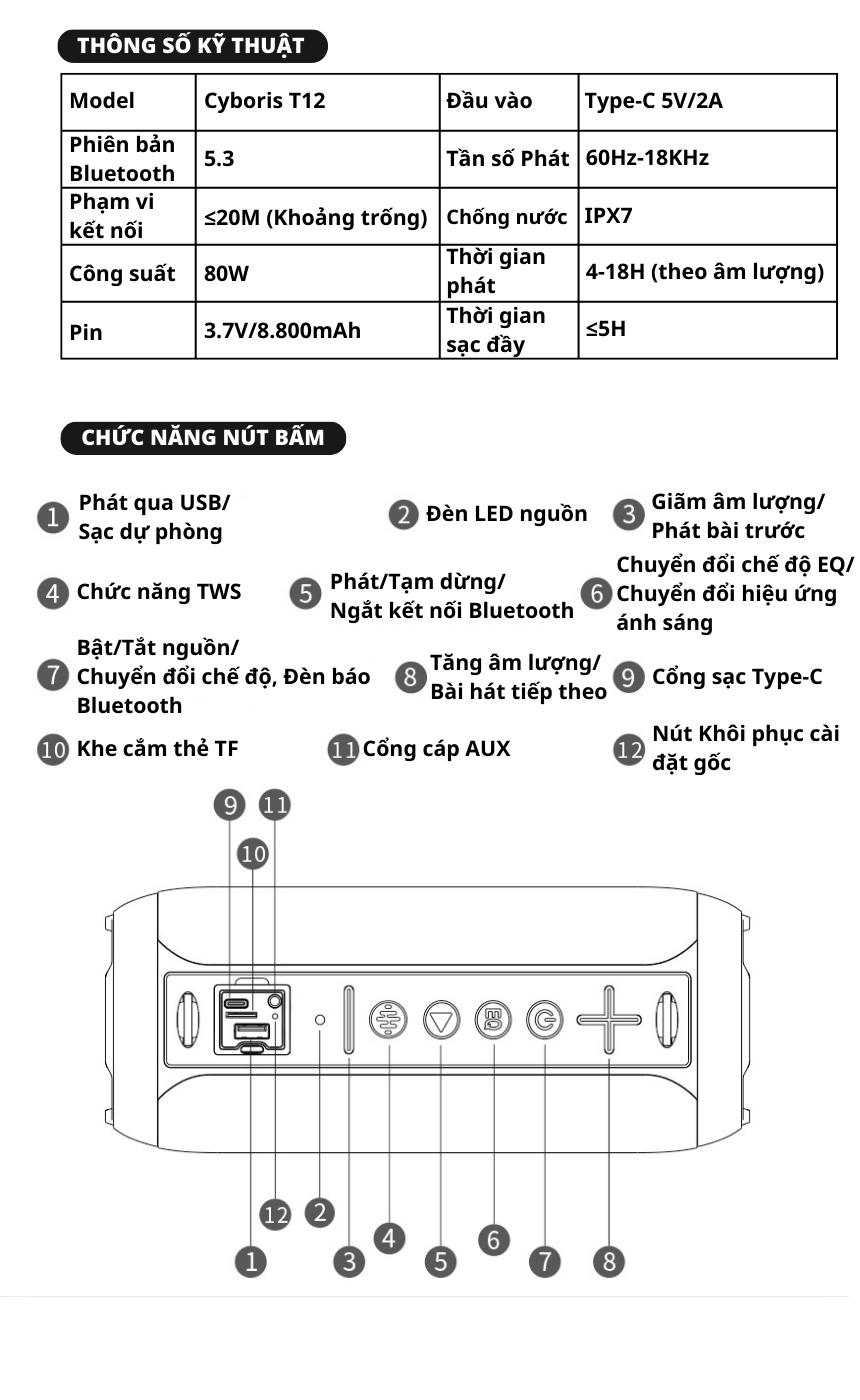 Hướng dẫn sử dụng Loa Bluetooth Cyboris T12