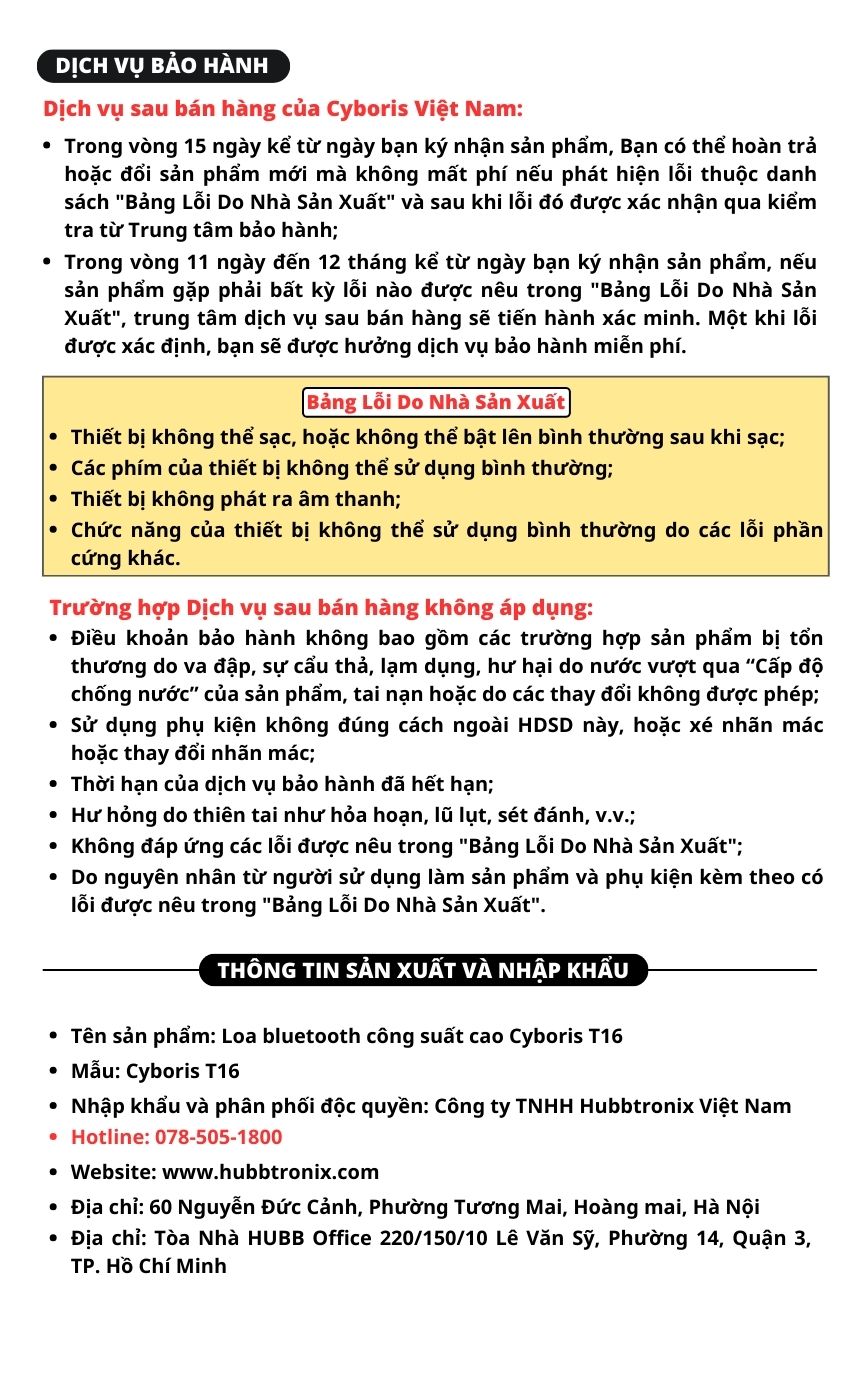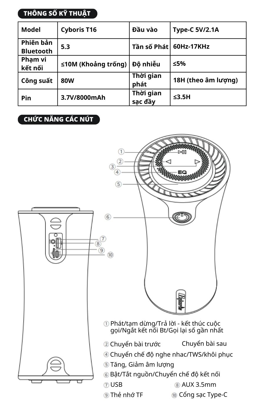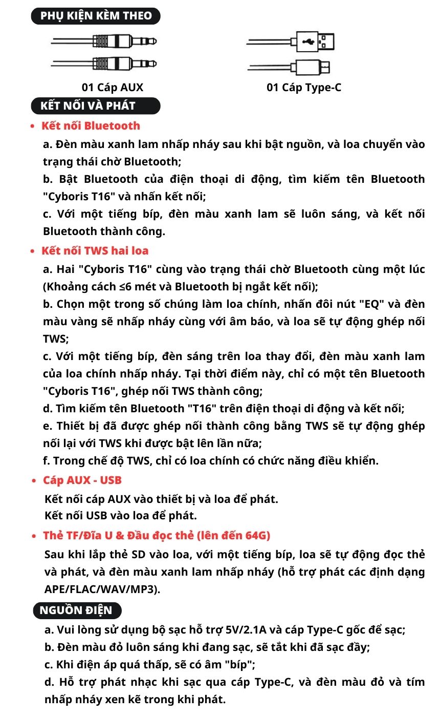 Hướng dẫn sử dụng Loa Bluetooth Cyboris T16