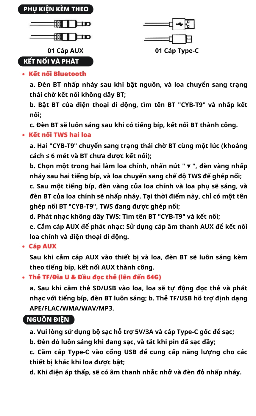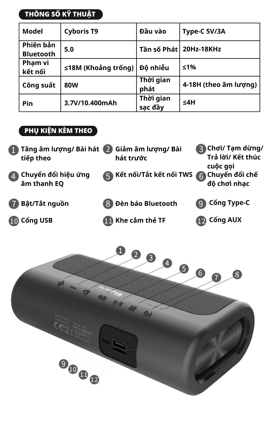 Hướng dẫn sử dụng Loa Bluetooth Cyboris T9