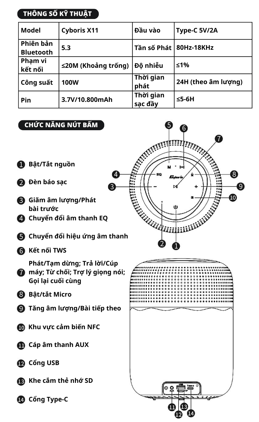 Hướng dẫn sử dụng Loa Bluetooth Cyboris X11