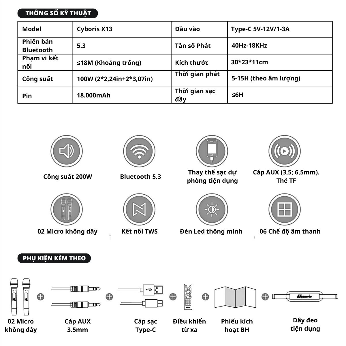 Hướng dẫn sử dụng Loa Bluetooth Karaoke Cyboris X13