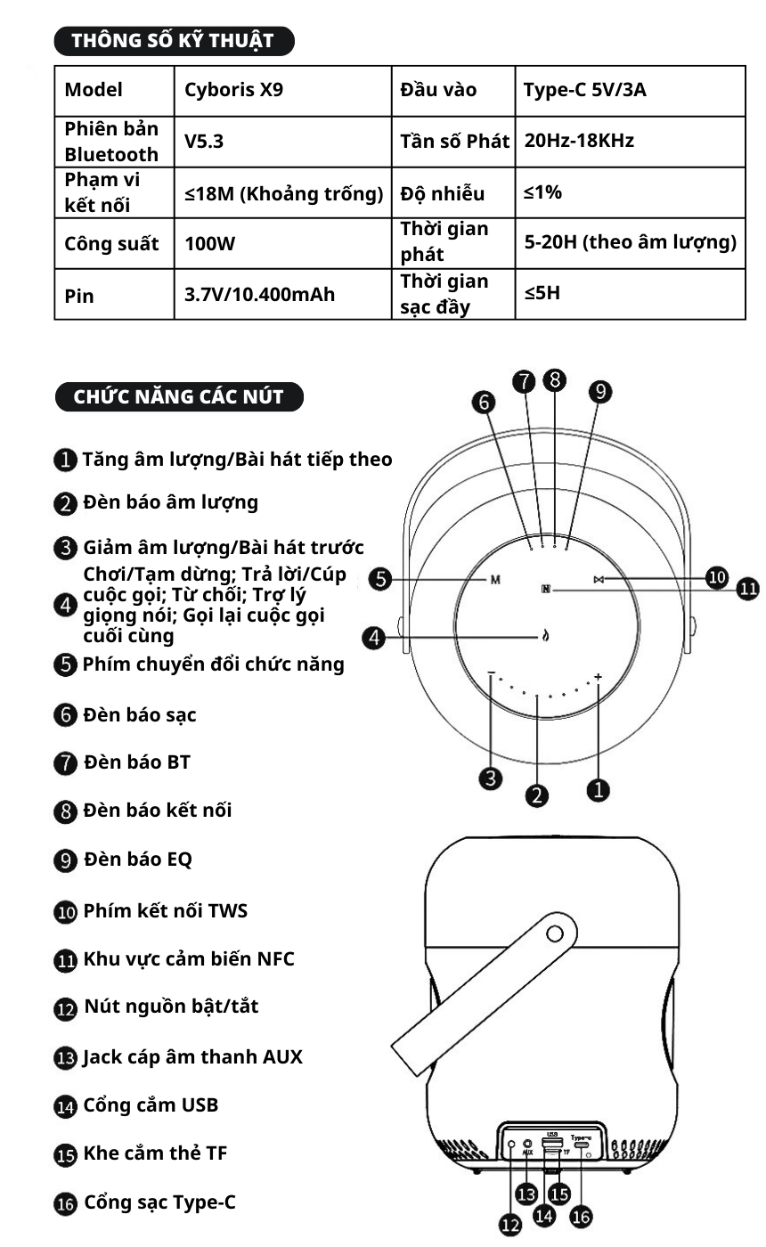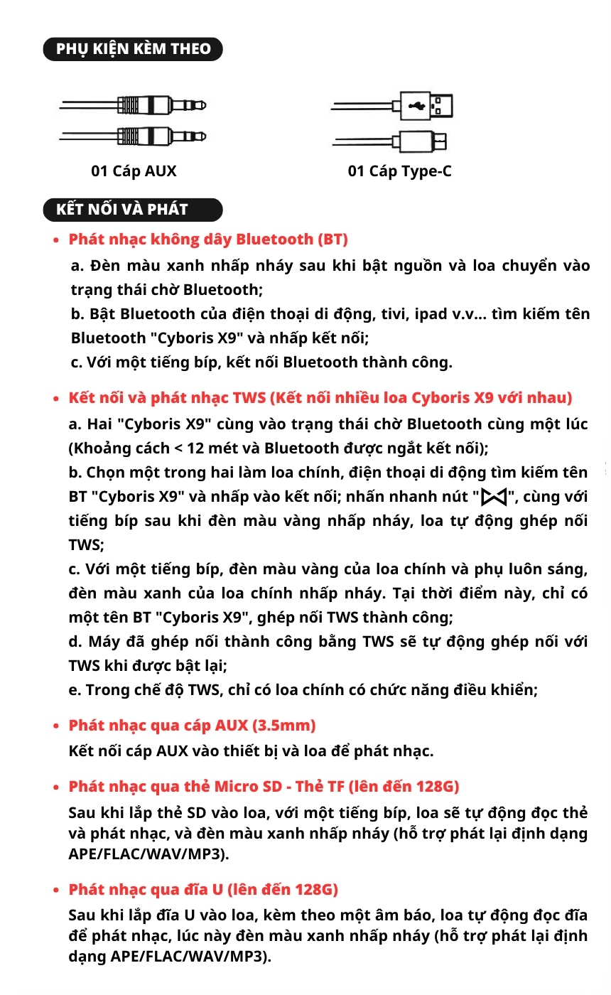 Hướng dẫn sử dụng Loa Bluetooth Cyboris X9