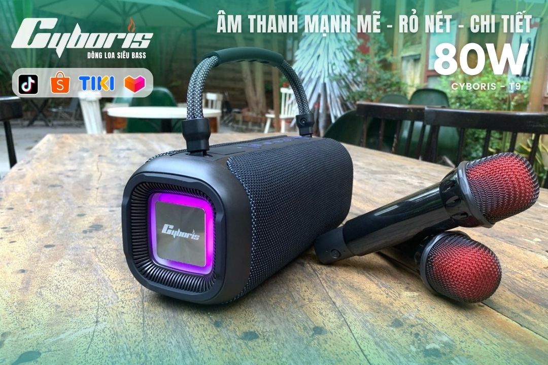 * Với công suất 80W bùng nổ mạnh mẽ, chiếc loa này mang đến trải nghiệm âm thanh nổi mạnh và dày sẽ khiến bạn mê mẩn. Được thiết kế dành cho những người khao khát âm lượng lớn và chất lượng âm thanh vượt trội, Cyboris T12 hoàn hảo cho các bữa tiệc, họp mặt hoặc đơn giản là thưởng thức những giai điệu yêu thích của bạn tại nhà. Công nghệ Bluetooth tiên tiến của nó cho phép kết nối không dây liền mạch, do đó bạn có thể dễ dàng kết nối các thiết bị của mình và truyền phát nhạc từ mọi nơi trong phòng. Và điều đặc biệt của Cyboris T12 là chức năng KARAOKE với 02 Micro kèm theo sẽ giúp bạn trở thành một ca sỹ chuyên nghiệp.