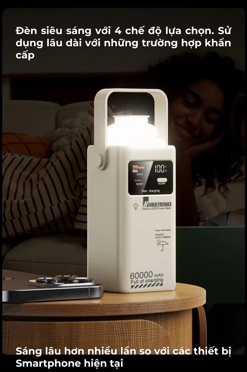 Một tính năng đặc biệt của pin dự phòng HubbFast là đèn LED chiếu sáng, mang lại sự tiện lợi trong các tình huống khẩn cấp, khi bạn cần sử dụng đèn sáng để tìm kiếm đồ vật hay trong các chuyến du lịch, dã ngoại. Các dòng sản phẩm như HubbFast-PD100 không chỉ cung cấp dung lượng lớn để sạc nhiều thiết bị cùng lúc mà còn tích hợp đèn LED mạnh mẽ, phục vụ cho các nhu cầu chiếu sáng khẩn cấp.