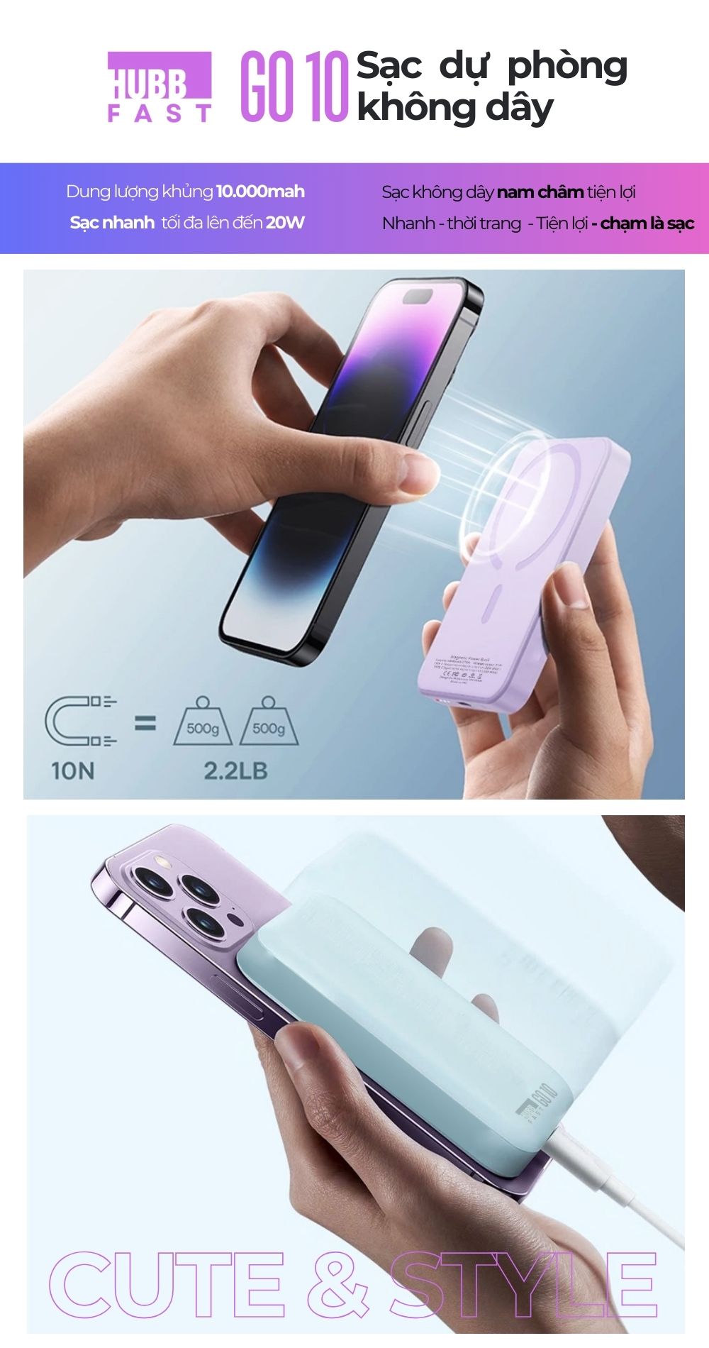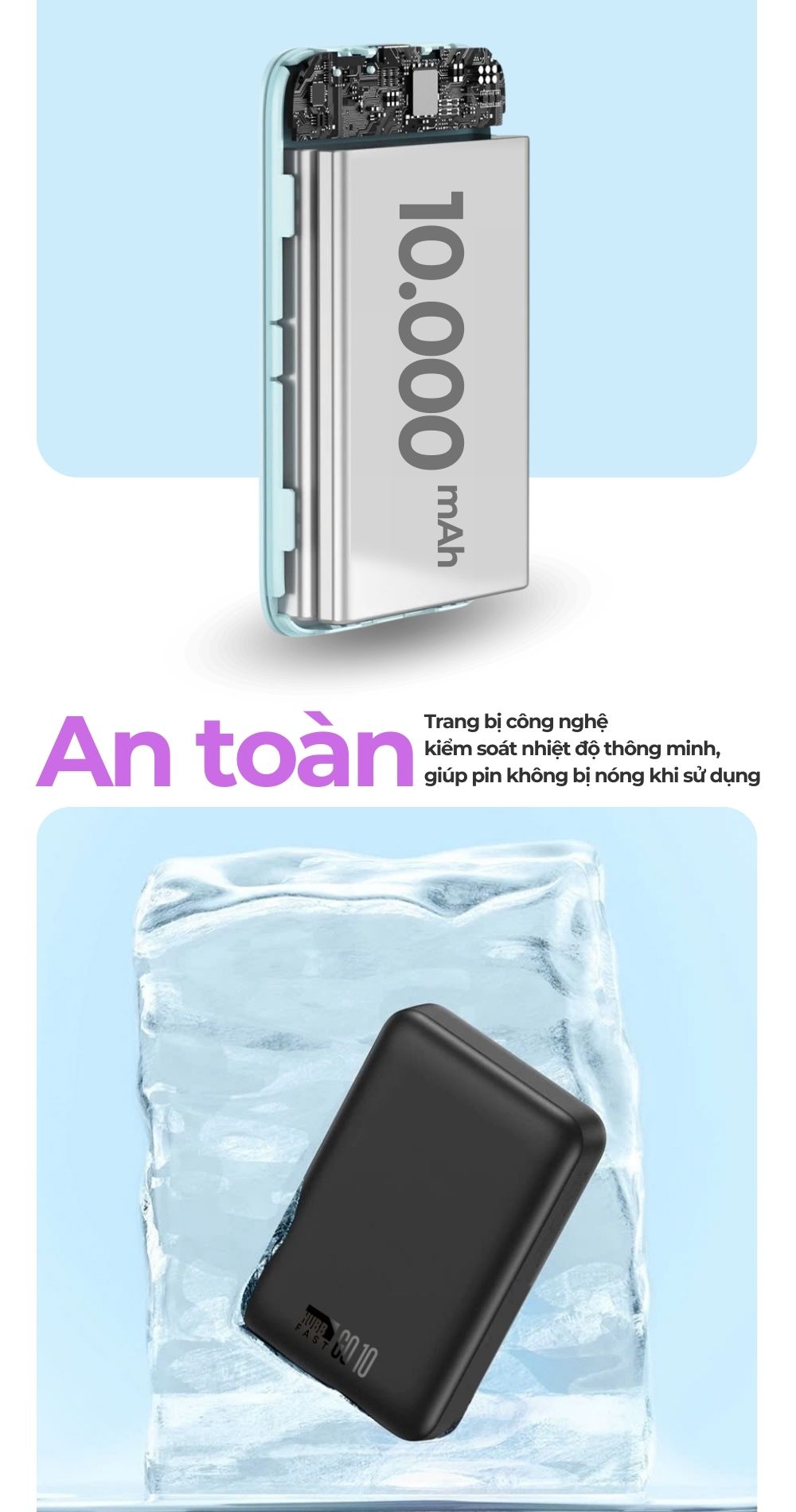 ✔️ Dung lượng 10.000mAh, đáp ứng nhu cầu sử dụng cả ngày dài.