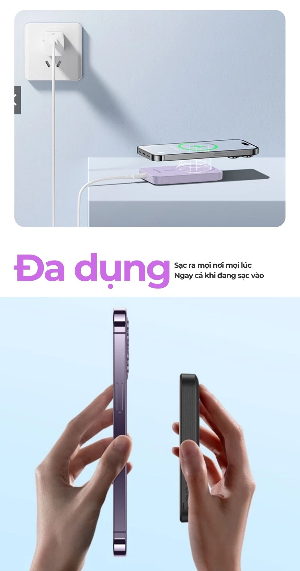 ✔️ Đa dụng, vừa sạc vào vừa sạc ra, tiện lợi trong nhiều tình huống.