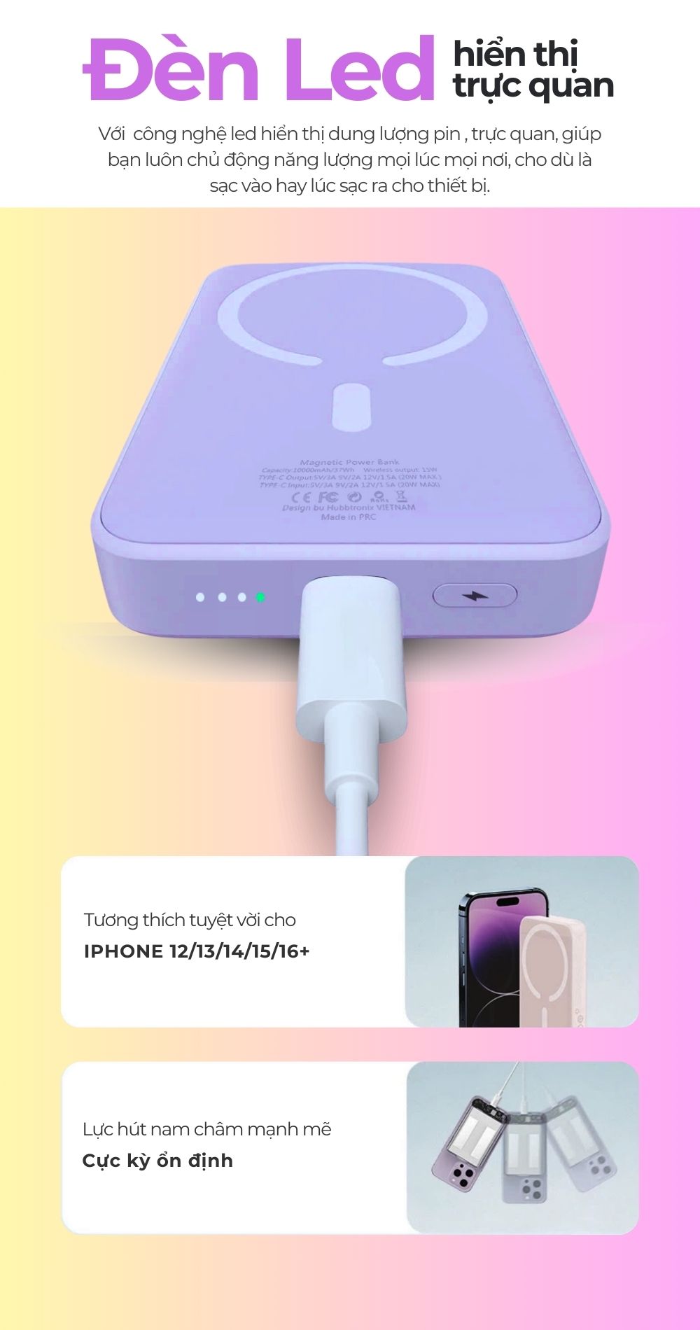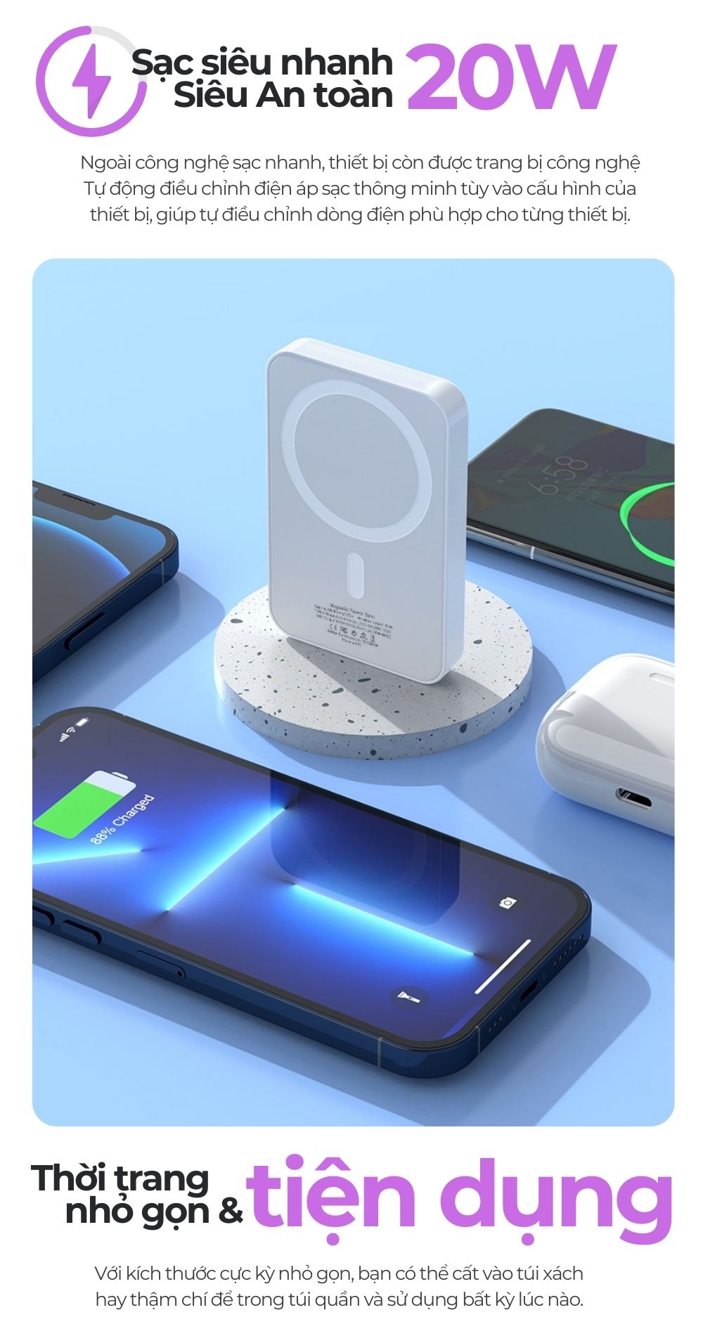 ✔️ Sạc không dây từ tính tiện lợi, tương thích với nhiều dòng điện thoại.