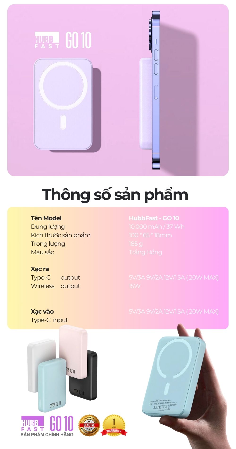 👉 Dung lượng: 10.000 mAh / 37 Wh