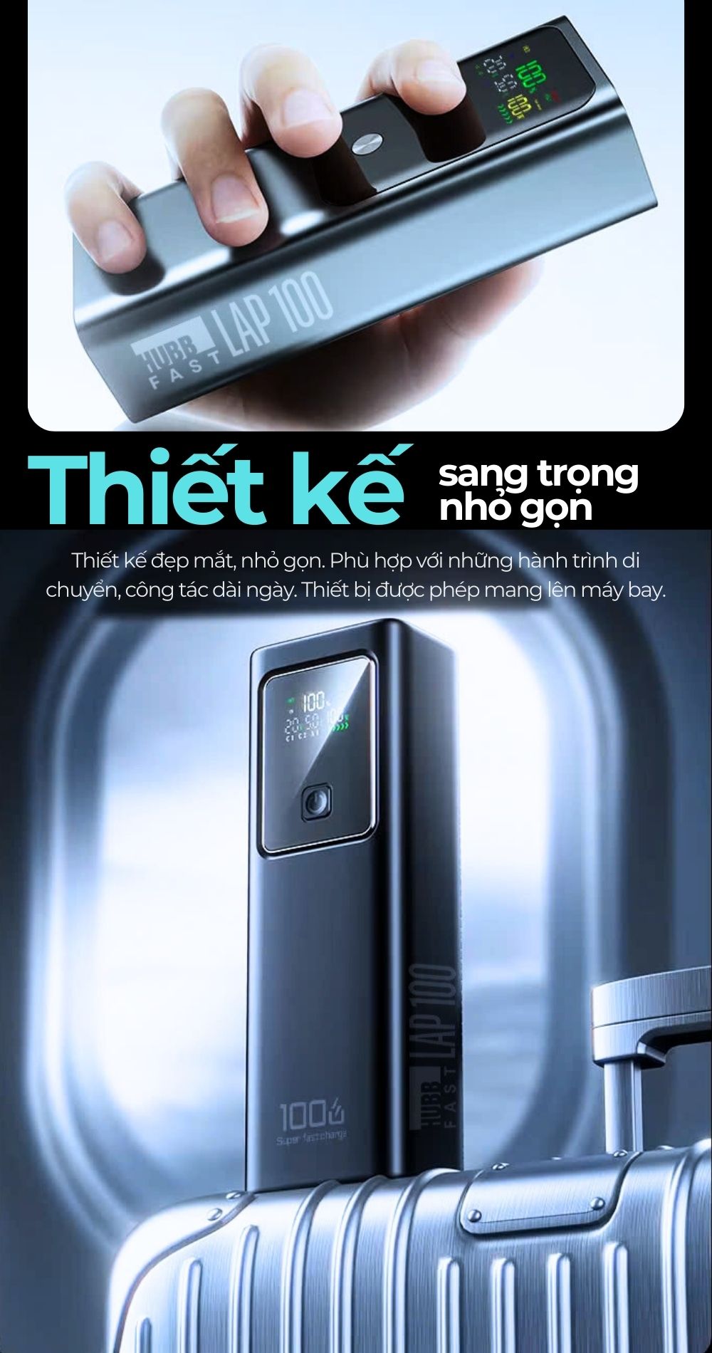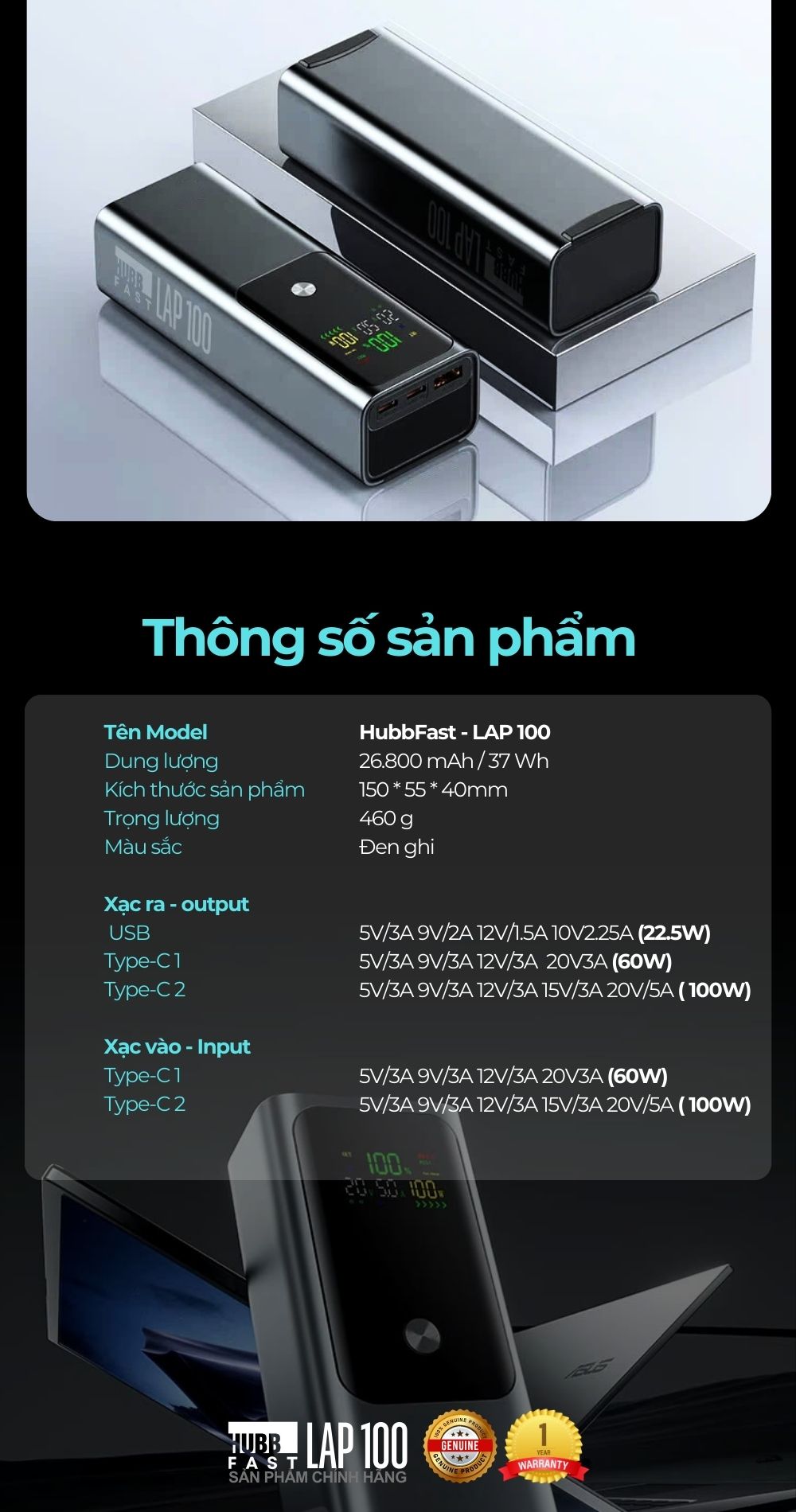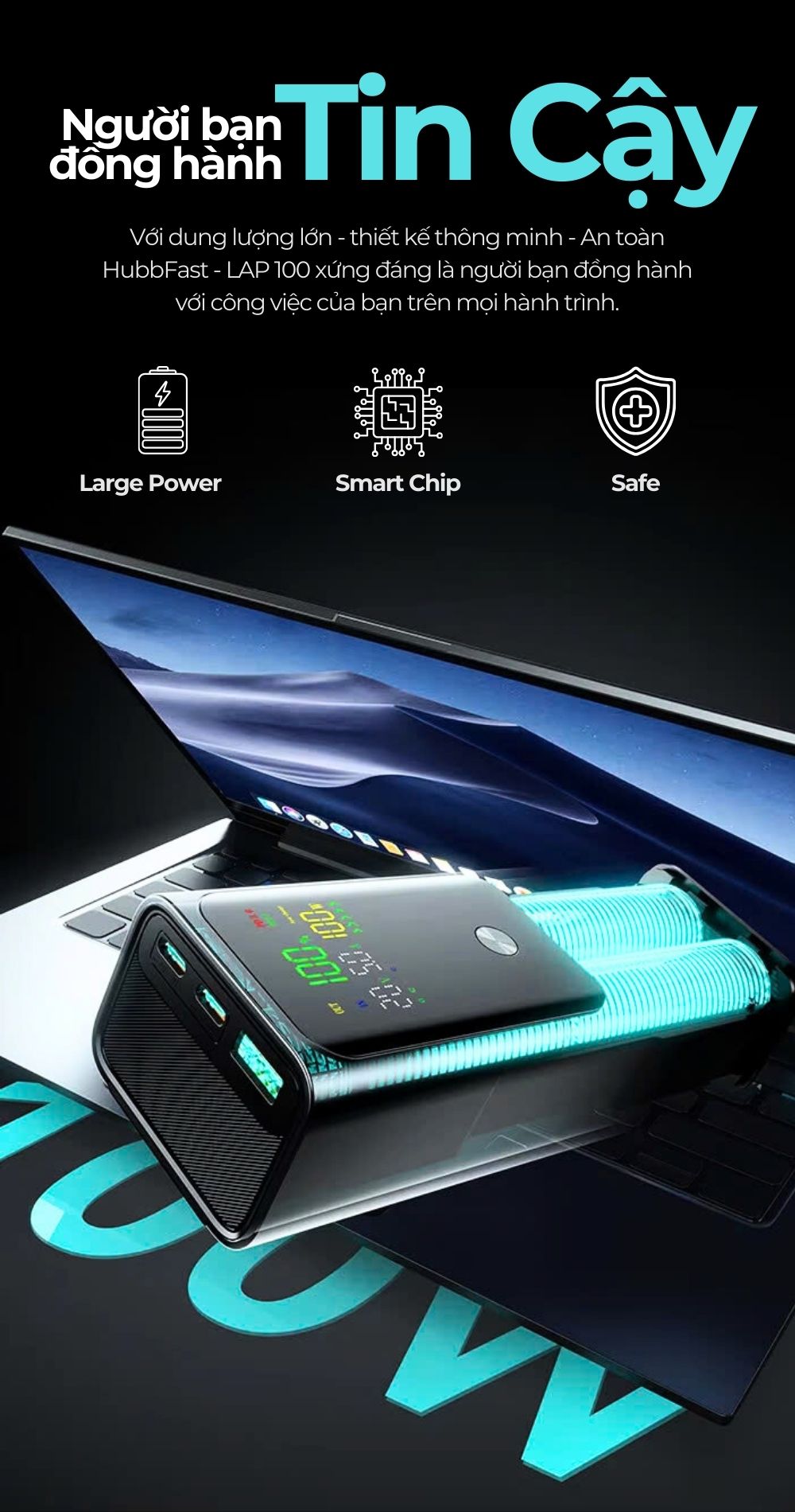 ✔️ Sạc siêu nhanh 100W: Rút ngắn tối đa thời gian sạc cho cả laptop và các thiết bị di động khác.