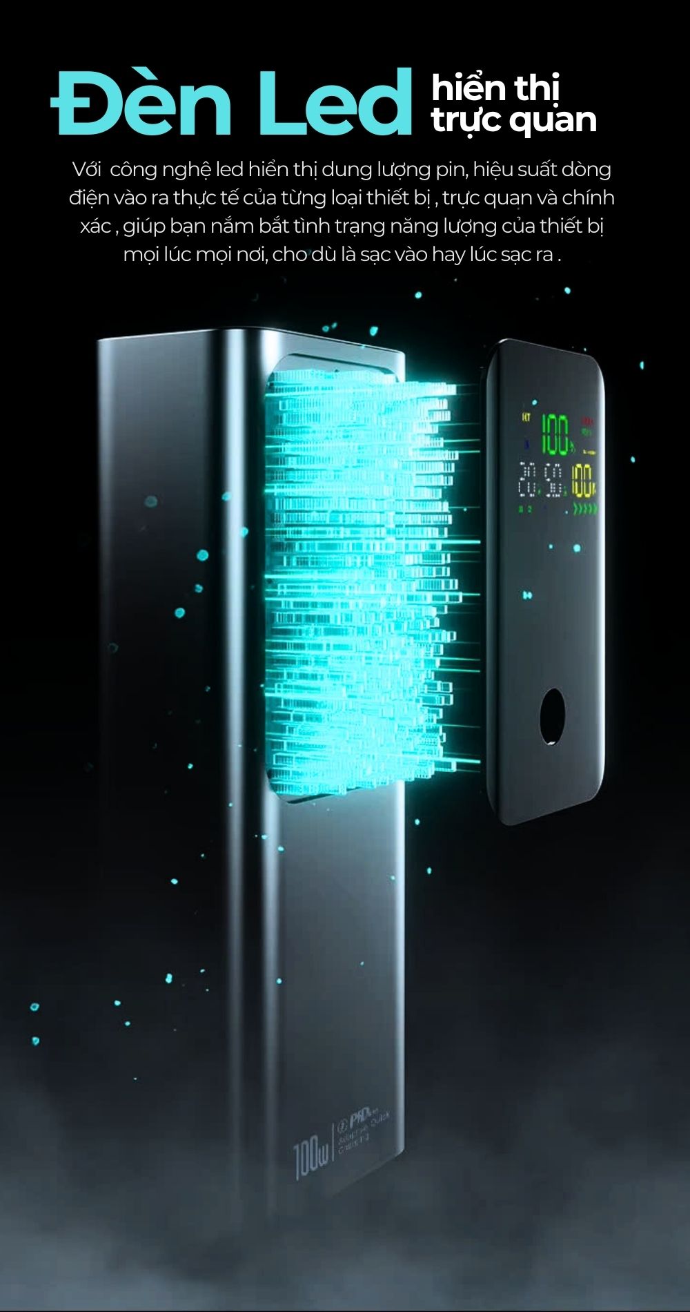 ✔️ Màn hình LED hiển thị trực quan: Theo dõi dung lượng pin và trạng thái sạc dễ dàng.