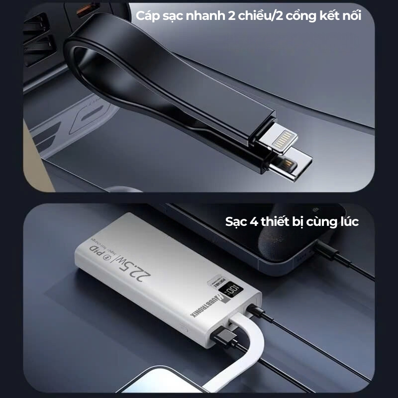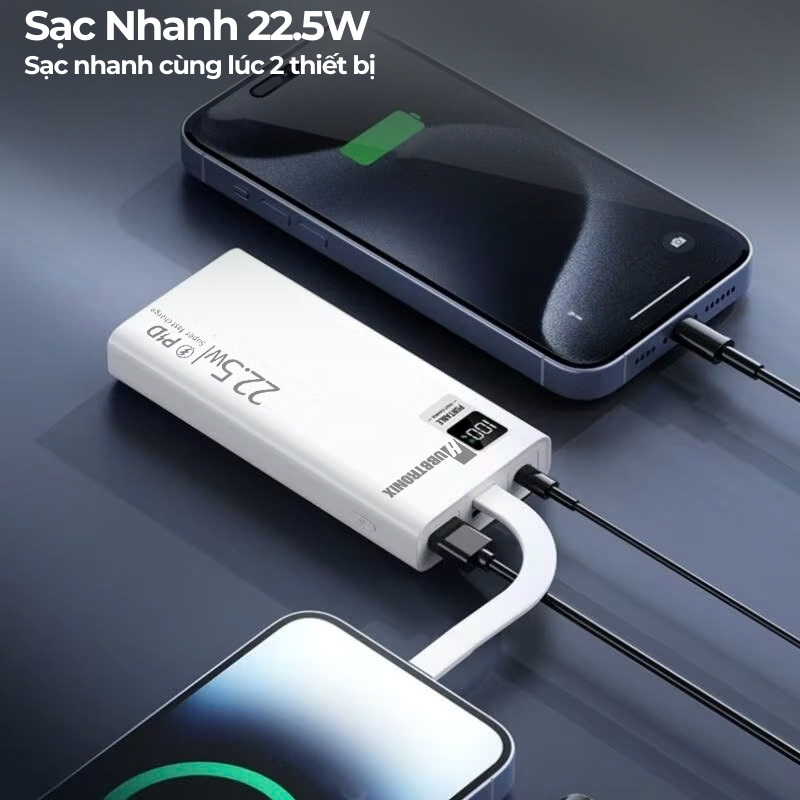 Công suất đầu ra 22.5W: Hỗ trợ sạc nhanh cho các thiết bị di động, giúp bạn sạc điện thoại một cách nhanh chóng và hiệu quả.